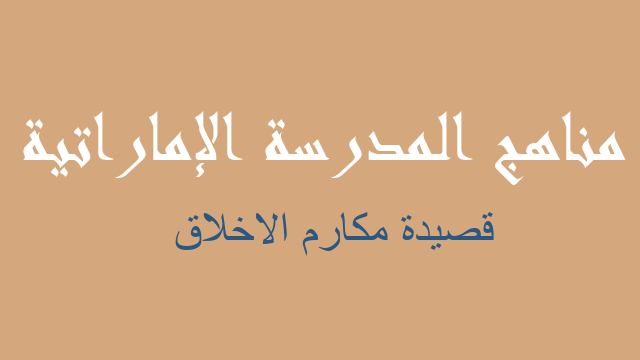 قصيدة مكارم الاخلاق لغة عربية صف ثامن فصل ثاني - مناهج المدرسة الإماراتية